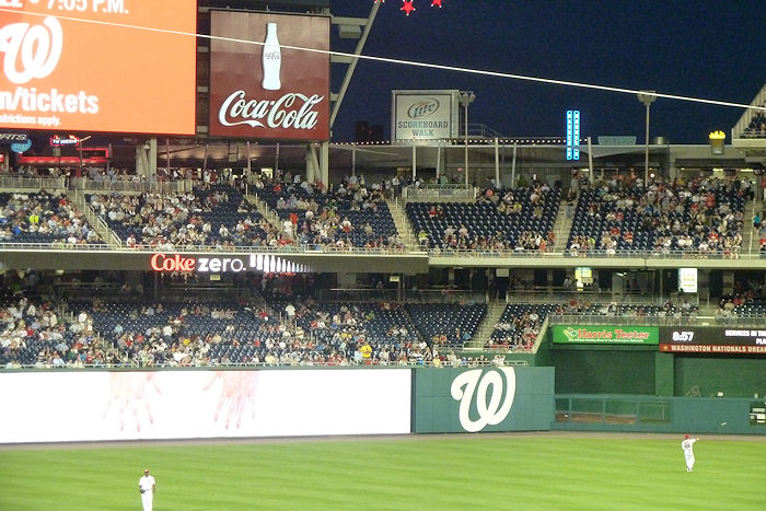 A glimpse of two of the new stadium eateries (and the crowds in line)--with the Yards Park pedestrian bridge and the Navy Yard Riverwalk both visible as well. (link)