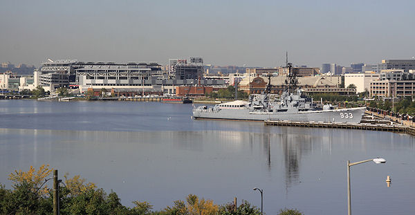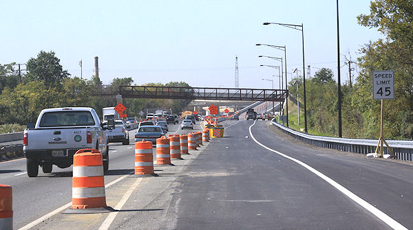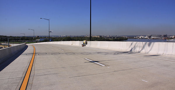 Just as the bridge begins to rise, you can see to its right the beginnings of the eventual new connection between southbound DC 295 and the new inbound 11th Street Bridges. (Yes, you will be able to get right on the 11th Street Bridges and then the Southeast/Southwest Freeway from DC 295 when this is done!)