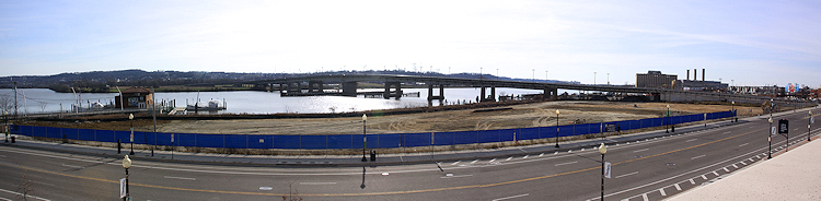 A final stitched-together panorama of the Anacostia's western shoreline, from Nationals Park to the Navy Yard. (See a larger version.)