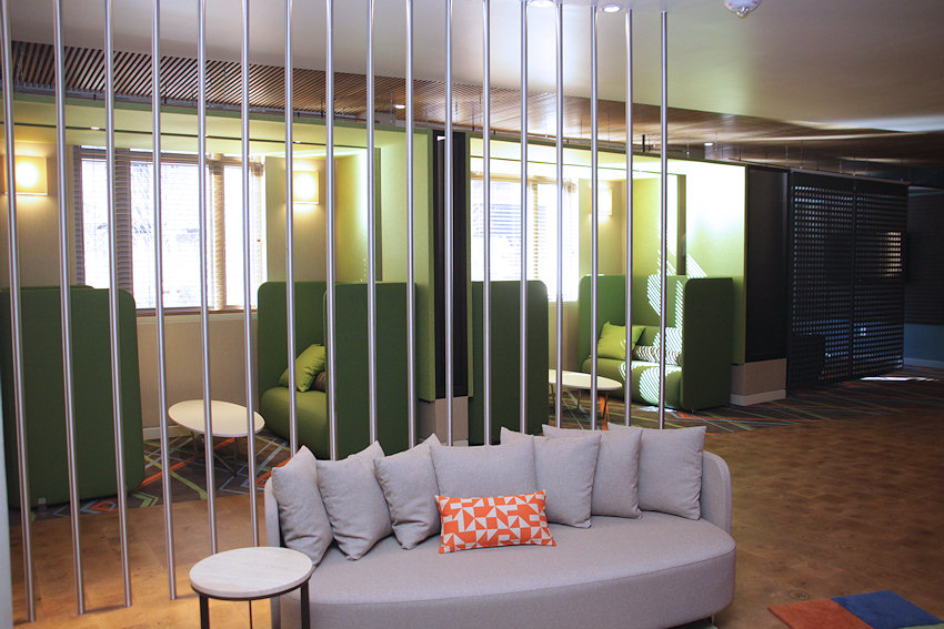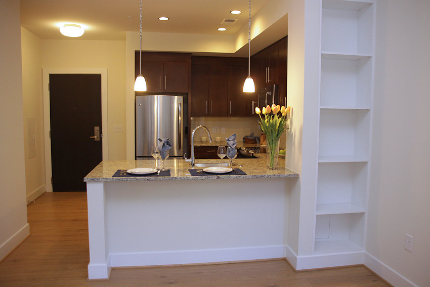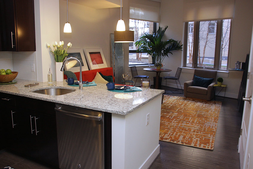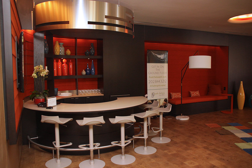 Looking back toward the main entrance of the leasing center, which will eventually handle all three buildings at WC Smith's "Collective"--the Park Chelsea, Agora, and the Garrett. (link)