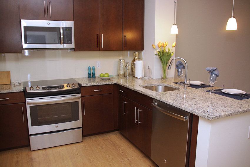 Peeking into the bedroom while also peeking at the full-size washer and dryer, standard in every unit (though some units have them side by side). (link)