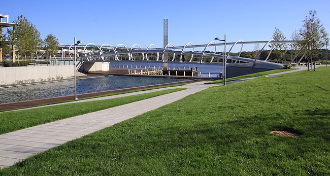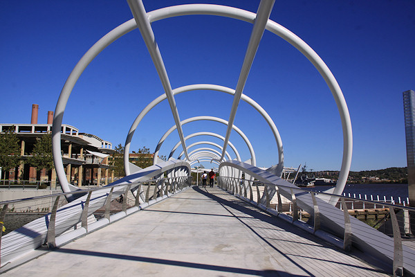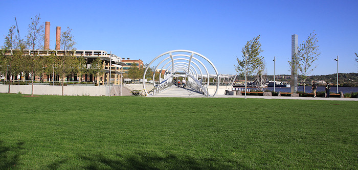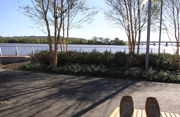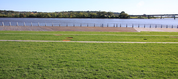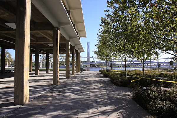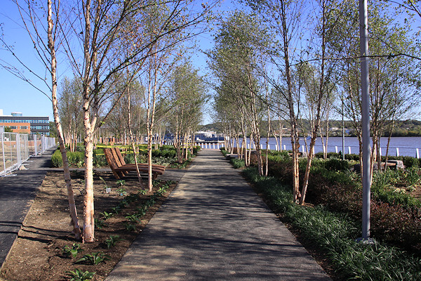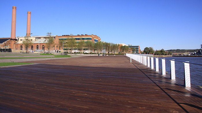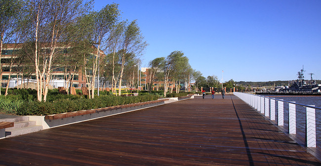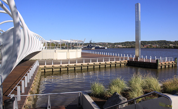 The eastern end of the boardwalk, ending at the Navy Yard's fence. The Navy Yard's portion of the boardwalk was built in the early 2000s, and takes you to the Display Ship Barry and then to 11th Street, SE. Talks are on-going to get this fence opened, but the Navy Yard has security concerns that will have to be addressed first.