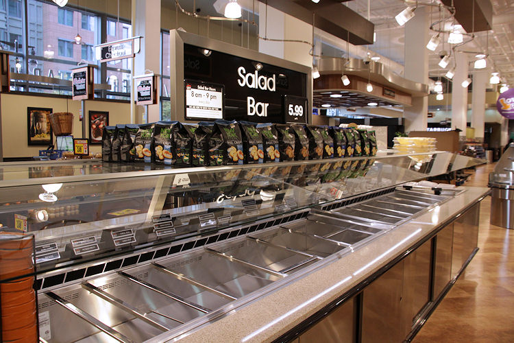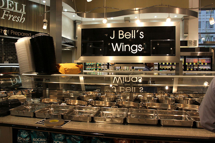 There are a number of ready-to-eat stations, for folks not wanting to bother with that whole food-preparation thing. J Bell's Wings are only at this store and one other in the city. (link)