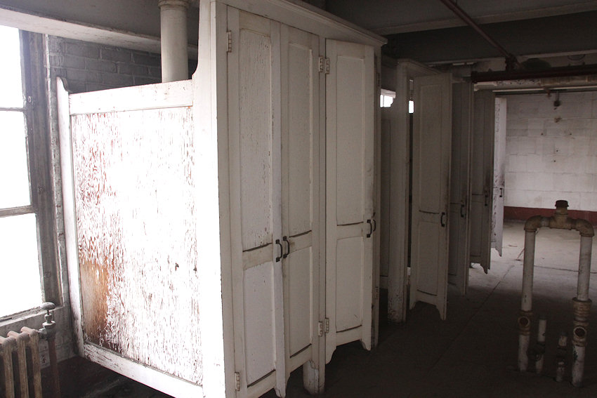 Building 202, aka the Broadside Mount Shop, aka the Navy Gun Asssembly Building, originally built in 1941. After the Navy moved out, various federal agencies occupied the building, including the Federal Protective Services, until Forest City took over the building as part of the Yards footprint in 2006. For a time PN Hoffman had been attached to a planned renovation to turn it into condos, but now the