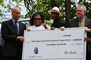 On April 30, 2007, Mayor Fenty, the parents of Diamond Teague, and Ward 6 councilman Tommy Wells accepted a check from the JBG Cos., $1.5 million of which will help fund the creation of Diamond Teague Park (the rest goes to