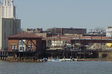 In September 2009, limited water taxi service for some baseball games began between Alexandria's waterfront and Diamond Teague Park. Here the Miss Christin prepares for docking. (9/29/09)